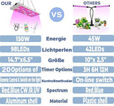LED Vollspektrum Pflanzenlampe - 98 LEDs, Fernbedienung, Timer, 3 Schaltmodi, Dimmbar