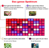 Vollspektrum-Wachstumslicht: Ausgestattet mit 98 h ocheffizienten LEDs ( 61 Rot + 16 Blau + 2UV + 5IR + 7CW + 7WW), kann die Grow-Lampe die Wachstumsbedingungen für Pflanzen erfüllen, wenn kein Sonnenlicht vorhanden ist. Das volle Spektrum (390nm-730nm) ist für alle Pflanzen geeignet, um Wurzeln zu schlagen und zu sprießen; das rote (660nm) + blaue (450nm) Spektrum ist großartig für das Blühen und Tragen von Früchten; und das rote+blaue+volle Spektrum (das gemischte Licht von rot+blau+warmweiß+IR+UV+CW+WW) ist perfekt für die Förderung des Pflanzenwachstums.