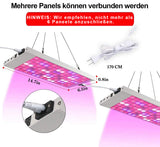 Vielseitig anschlussfähiges Design und breite Anwendung: Die neue Version der hängenden LED-Pflanzenlampen für den Innenbereich kann über eine Steckdose für einen größeren Beleuchtungsbereich (nicht mehr als 6 Panels) angeschlossen werden. Sie können für Hydrokulturen in der Erde und für Zimmerpflanzen wie Orchideen, Kartoffeln, Salat, Paprika, Tomaten oder Aquarienpflanzen (Gewächshaus, Garten, vertikale Farm, Pflanzzelt, Wachstumsraum) verwendet werden.