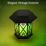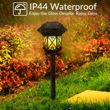 Vintage look & 2 modes: This light features retro look and a milky white lampshade with unique patterns on it. Once lit, it gives off a soothing glow in warm white mode, and slowly switches among multiple vibrant colors in colorful mode, adding mysterious and charming vibes to your outdoor landscape.