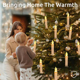 - 🕯 Anwendungsbereich: Ideal für 1,2m -2,5m Tannenbäume als Weihnachtsdeko geeignet. Höhe der LED Kerzen mit Clip: 8,5cm x (D) 1,5cm , Abstand zwischen Kerzen: 40cm